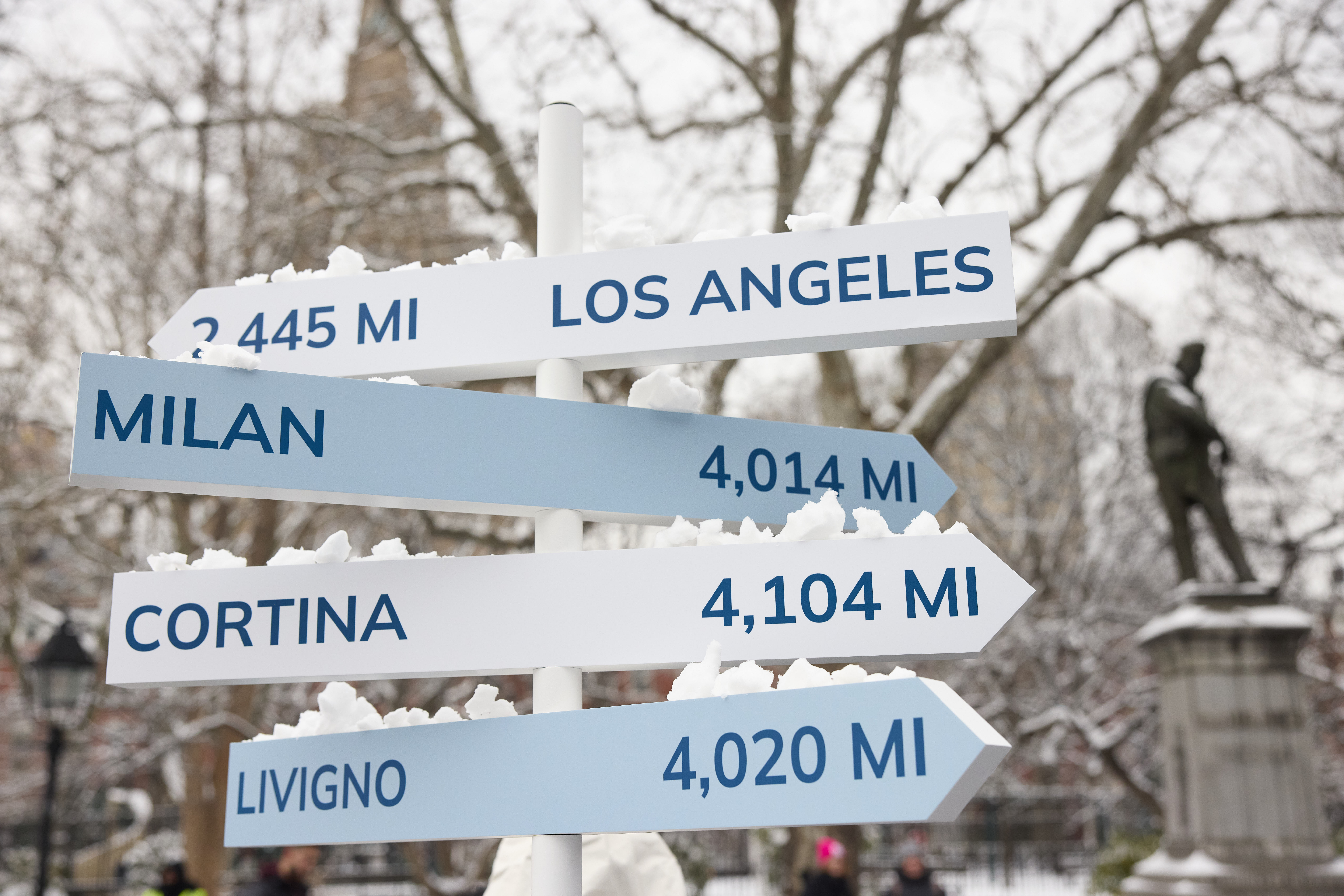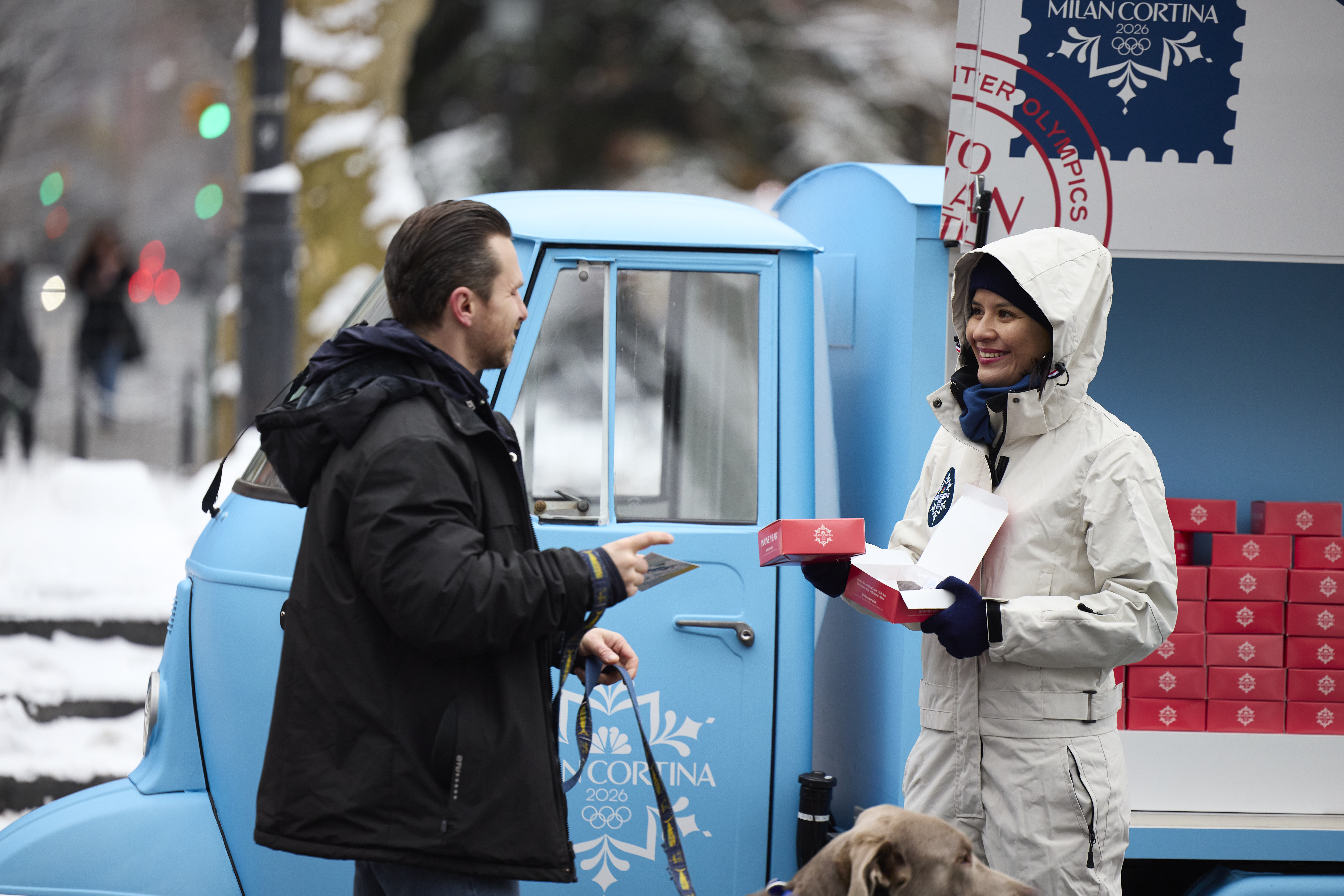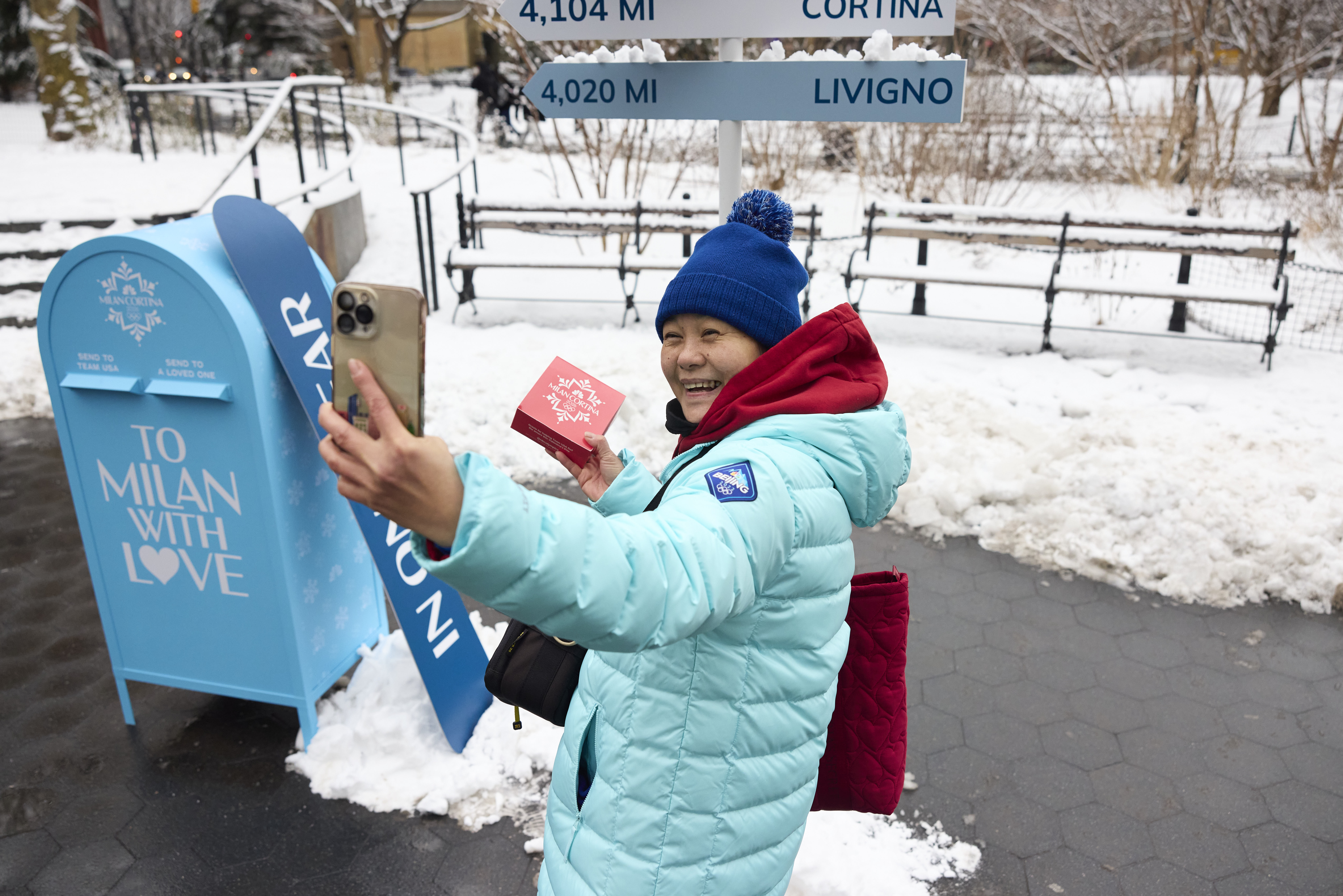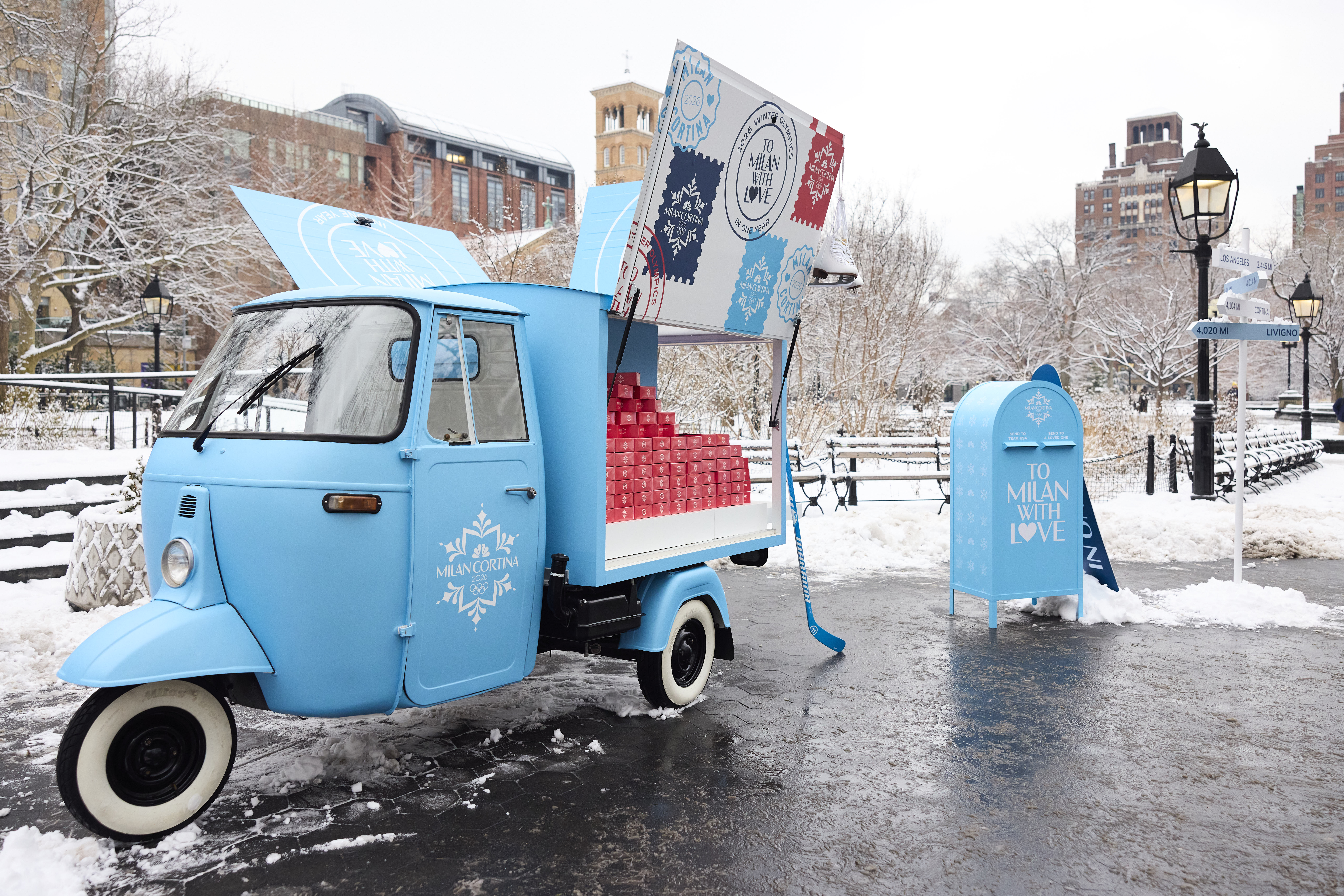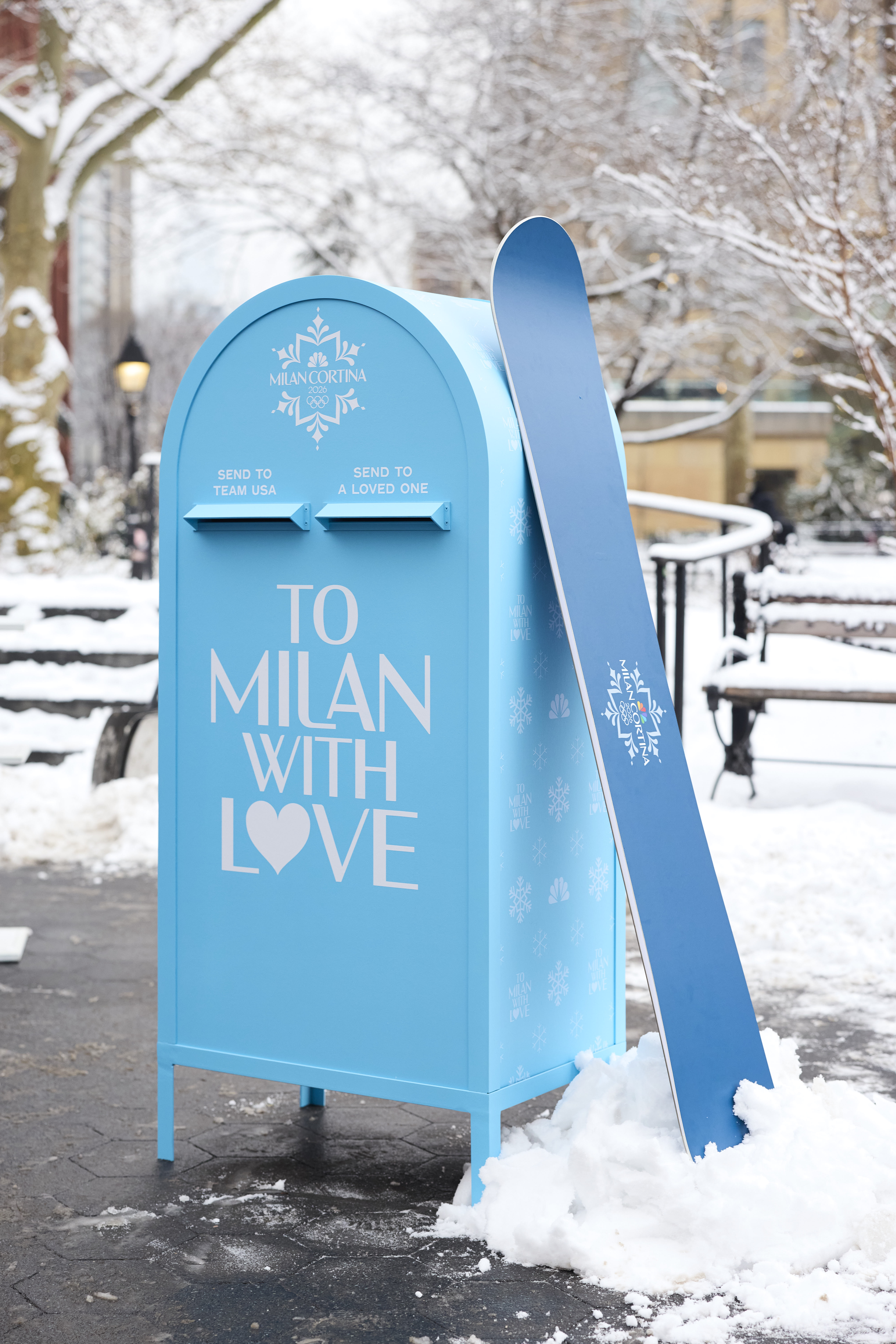 I led creative for a Valentine’s Day pop-up in Washington Square Park to mark one year out from the 2026 Winter Games on a frigid, snowy day that honestly did half the atmospheric work for us.