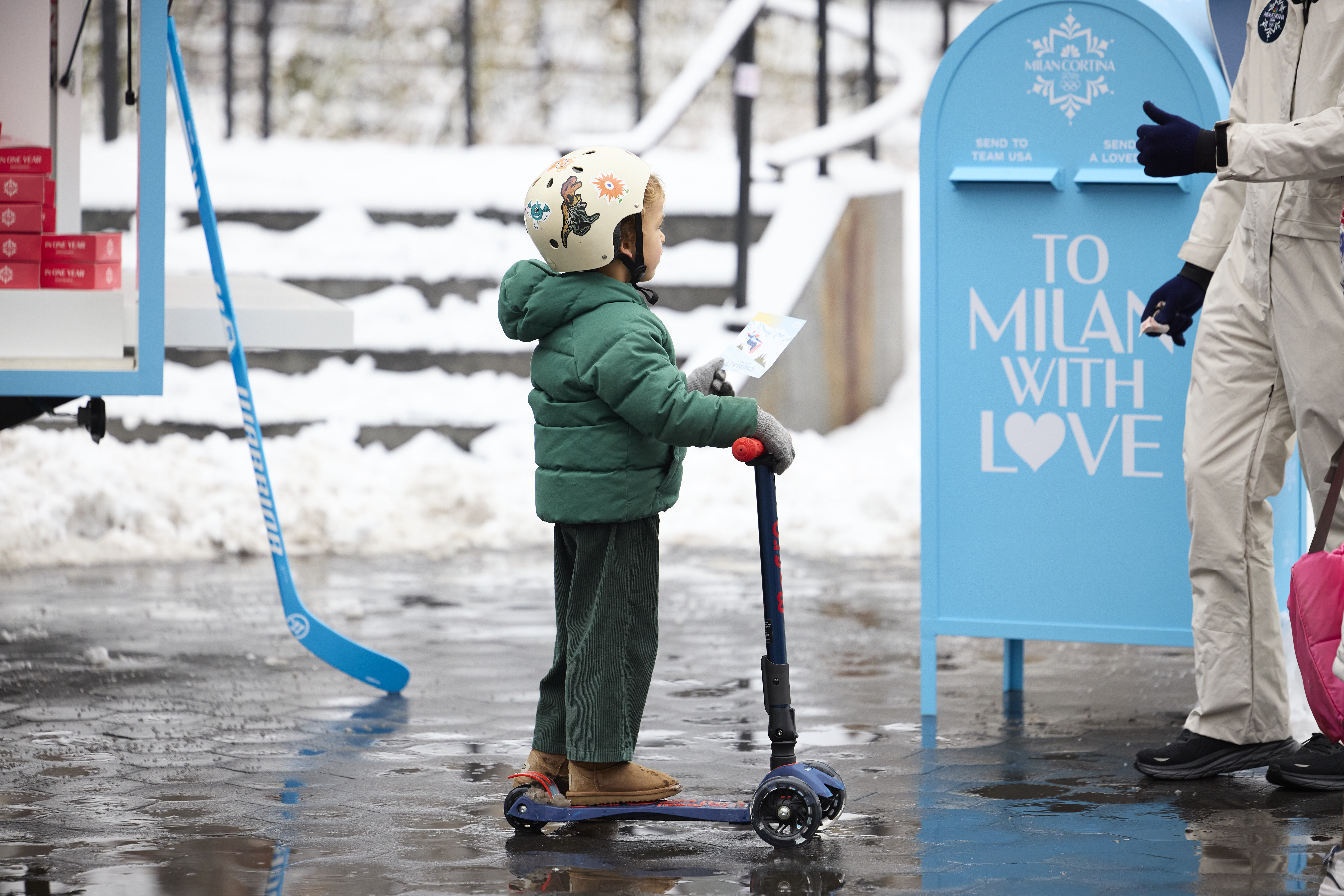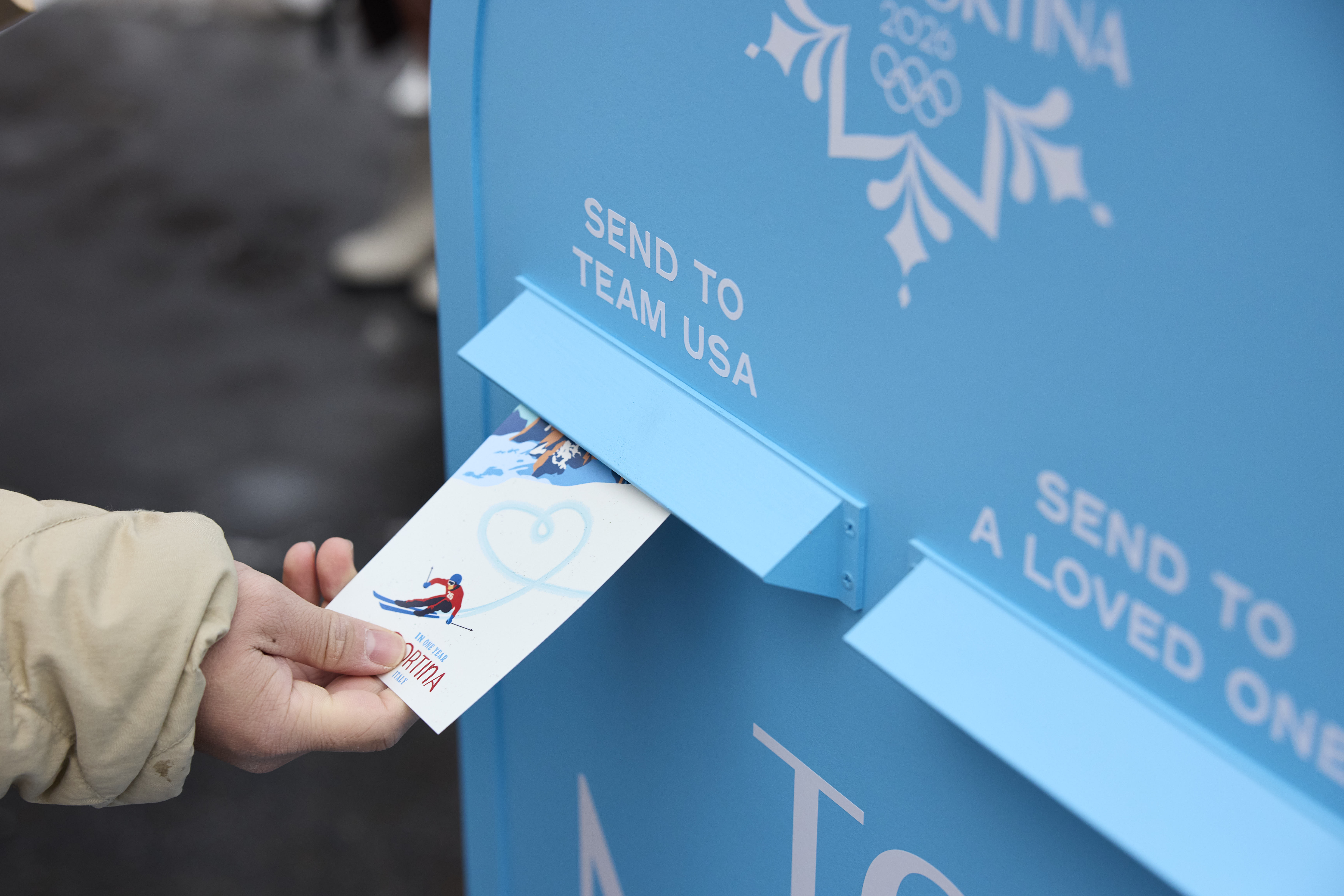 We mailed nearly 1,000 postcards and ran out of cannolis before close—cold hands, full hearts, message delivered. We ❤️ Team USA ❄️🇮🇹!